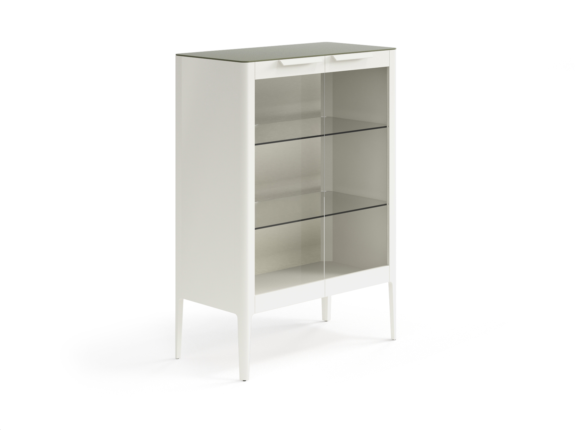 Изысканная витрина украсит интерьер дома и подчеркнёт вашу индивидуальность. Распашные фасады с гладкими серыми стёклами — главная особенность этого изделия, которая делает его уникальным. Две полки из калёного прозрачного стекла выдерживают сильные нагрузки, что позволит разместить внутри витрины книги, посуду или другие предметы декора. Ручки в форме крыла на фасадах подчёркивают элегантность изделия, благодаря удобному захвату пользование витриной становится максимально комфортным.