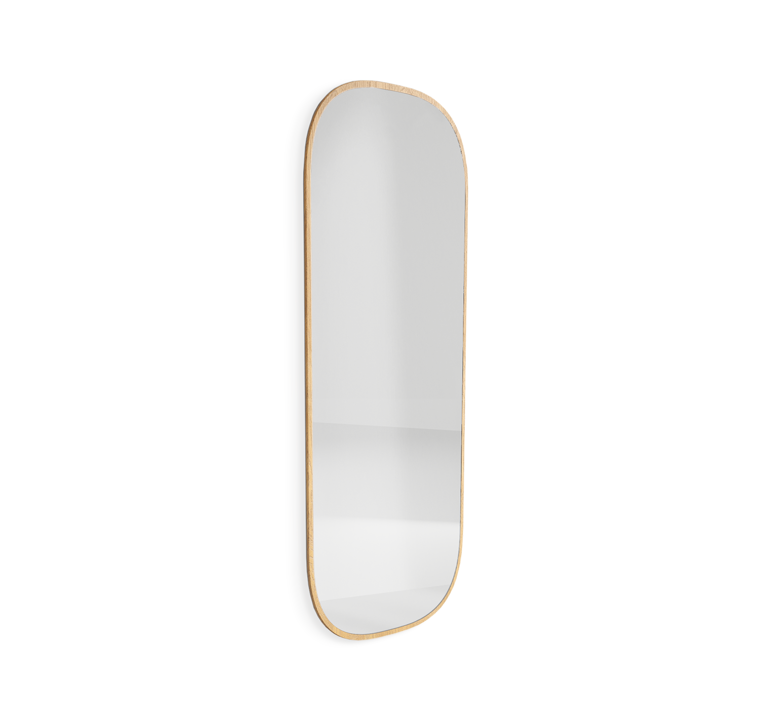 Стильное зеркало гармонично дополнит современный интерьер спальни, гостиной или коридора. Аккуратная рама, обрамляющая зеркало, полностью изготовлена из массива дуба, что делает конструкцию прочной и долговечной. При этом край рамы остаётся утончённым и лаконичным. Натуральные матовые оттенки дуба и округлые формы наполняют пространство красотой природы.