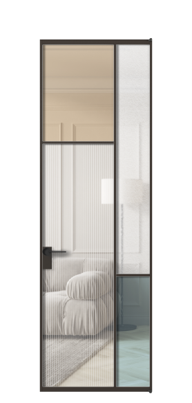 Мозаик — алюминиевые двери, в которых сочетается сразу несколько вариантов стёкол с различными декоративными эффектами, создающих образ «лоскутного одеяла».
